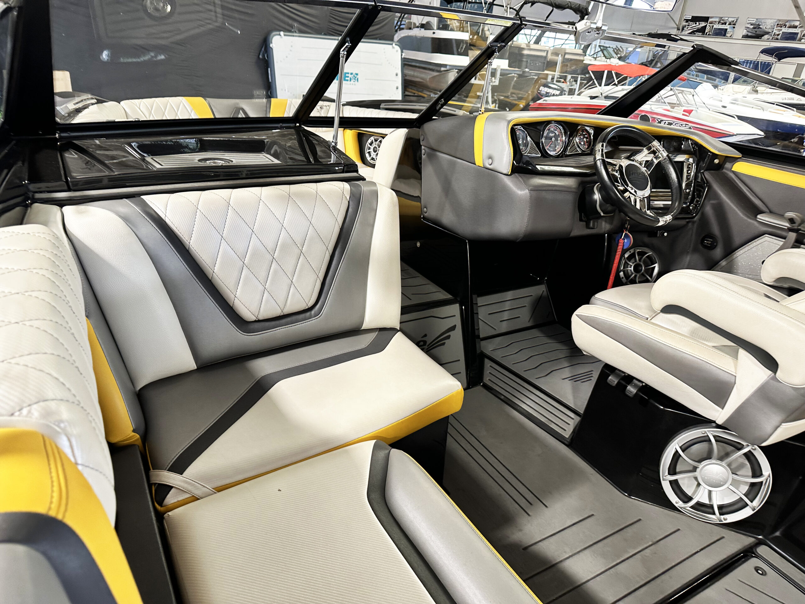 Powered by the formidable Raptor 440 6.2L V8, this boat delivers instant throttle response, impressive torque, and consistent pulling power for wakeboarding, wakesurfing, and skiing. The deep-V ConvexV hull ensures a smooth, confident ride even in choppier conditions, while providing clean, powerful wakes at all riding speeds.